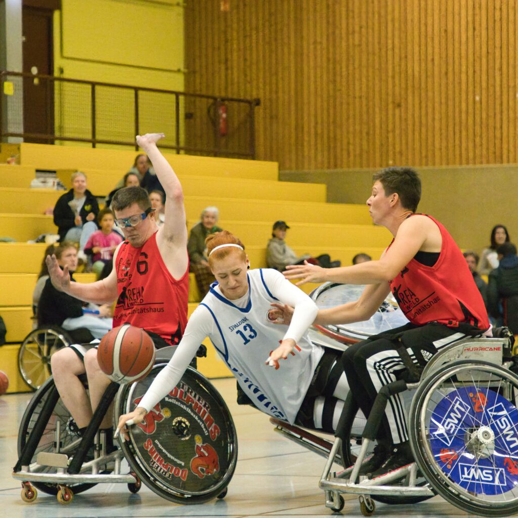 Los ging es Anfang November mit einem Heimspieltag gegen die Teams des PSC Pforzheim und die Nachwuchsmannschaft der Doneck Dolphins aus Trier. Die Pforzheimer waren mit den beiden starken Centern Marco Seiler und Sascha Volk gut aufgestellt. Bis zur Halbzeit gelang es uns nicht, die Zone konsequent dicht zu machen. Doch im dritten Viertel fanden wir zunehmend besser in die Partie – die Defense stand stabil und hielt die Gegner aus der Zone, und wir kämpften uns bis auf vier Punkte heran. Es schien, als könnten wir das Spiel noch drehen, doch am Ende mussten wir uns mit 37:29 geschlagen geben. Es spielten: Quentin, Alexander (2), Abdullah (4), Franca (4), Arzo, Nina (10), Matze (4), Alexandra, Nicole, Bas, Bodo (5).