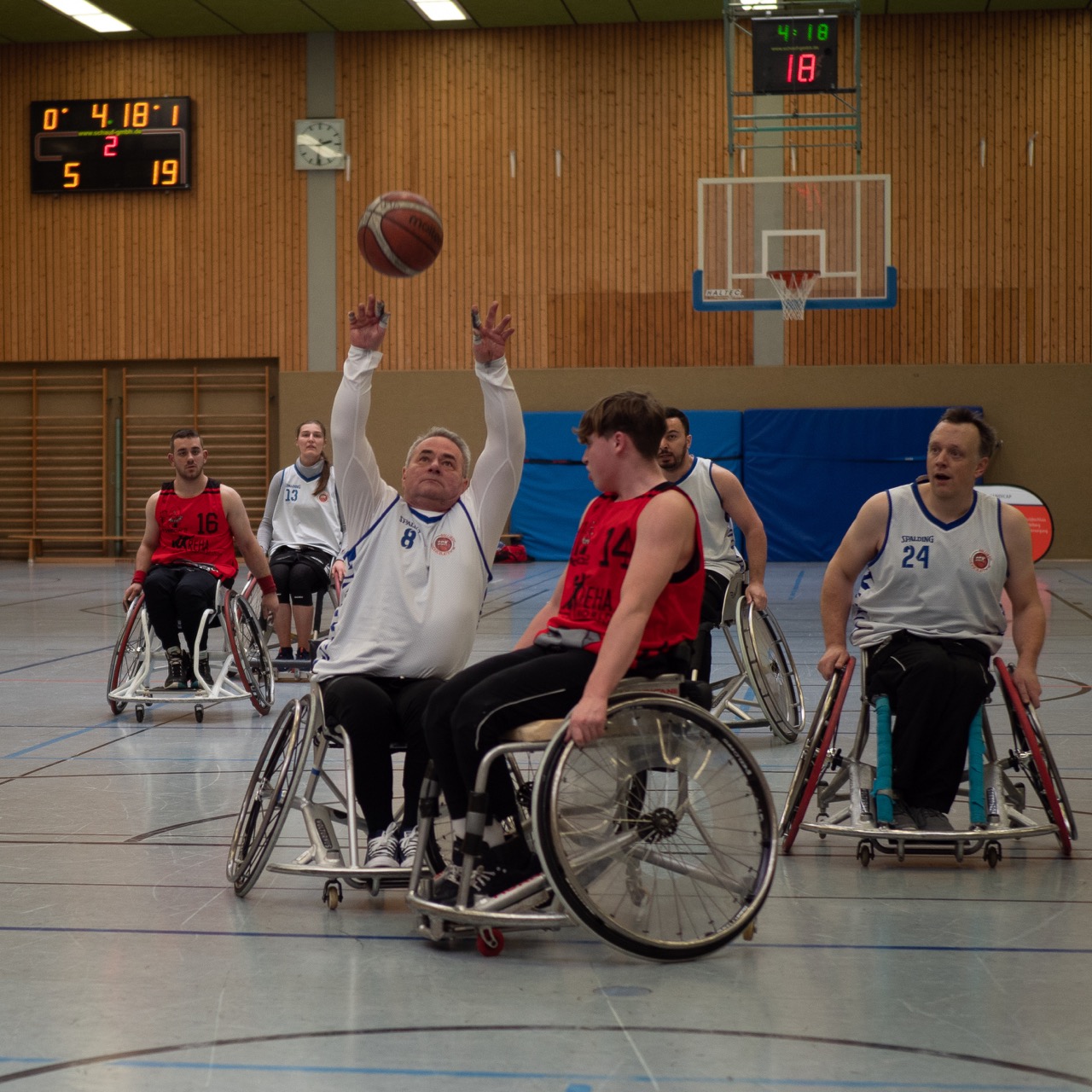 Dann gab es erstmal eine Pause für Heidelberg, denn die Mannschaften aus Freiburg und Trier spielten gegeneinander. Die beiden Teams waren immer in Schlagweite des jeweils anderen und wir sahen ein enges und ausgeglichenes Spiel. Zunächst gab es leichte Vorteile für die sehr fair spielenden Freiburger (nur 2 Fouls in dem gesamten Spiel). So ging es mit 23:17 in die Halbzeit.