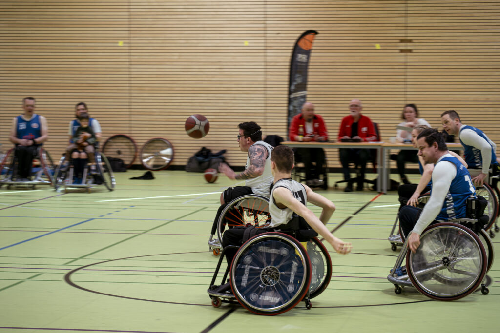 Mit nur einem Schiedsrichter, aber fünf Spielern auf jeder Seite, ging das Spiel los. Und es wurde schnell deutlich, wen die Rolling Chocolate als größte Gefahr für ihren Korb ausgemacht hatten: Den Pforzheimer Anton Welschof (25 Punkte). Sie versuchten es mit einem Vorchecking auf den Center, aber die Pforzheimer stellten gute Blöcke und die Heidelberger orientierten sich nicht rechtzeitig zu ihm, weshalb diese Taktik nicht aufging. Dadurch kreierte Pforzheim nicht selten eine Überzahl und einfache Korbleger. Gleichzeitig war Heidelberg vorne unkonzentriert und legte teilweise einfache Punkte daneben. Darum stellten die Chocolates auf eine Zonenverteidigung um, was besser funktionierte. Gleichzeitig schafften sie es weiterhin nicht, zu punkten, weshalb man in den ersten beiden Vierteln jeweils nur einen einstelligen Score hatte. Dadurch führten die Pforzheimer zwischenzeitlich verdient mit 14 Punkten und zur Halbzeit immernoch komfortabel mit 12 Punkten (26:14). Nun war es an den Heidelberger Coaches Marc Westermann und Thilo Prünte, sich etwas zu überlegen, wie man diesen Rückstand aufholen kann und am gesamten Team, diese Ideen umzusetzen.