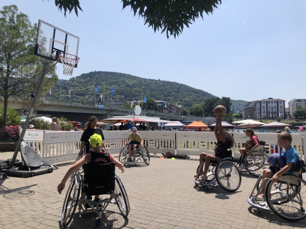 Rollstuhlbasketball im Sonnenlicht: Rolling Chocolate beim Lebendigen Neckar
