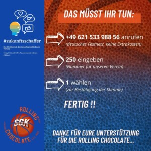 Die SGK Rolling Chocolate Heidelberg nimmt am Wettbewerb #zukunftsschaffer teil und dort haben wir mit unsem Projekt die Chance auf 5000€ im Publikumsvoting, welches von SAP gesponsert wird.